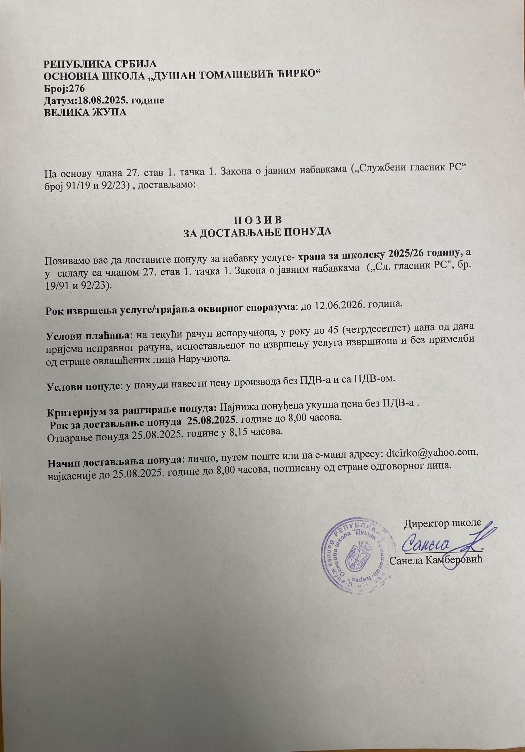Dokumentacija Мале набавке 18. Augusta 2025.20. Augusta 2025. Alen Durakovic Позив за понуду хлебPreuzmi