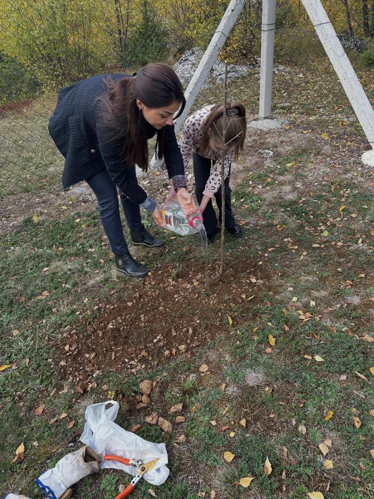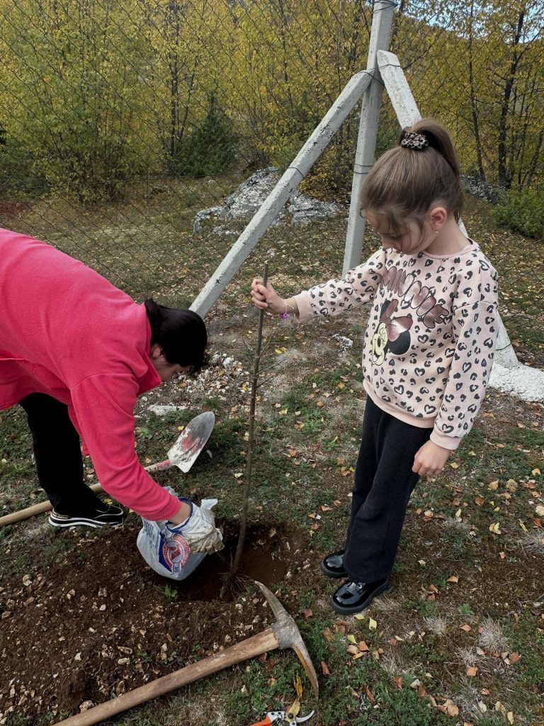 Sadnica jabuke koju je naša škola dobila u okviru aktivnosti u OŠ „Mijani“ prilikom obeležavanja “Dana jabuka”, danas je pronašla svoj novi dom! ![]()