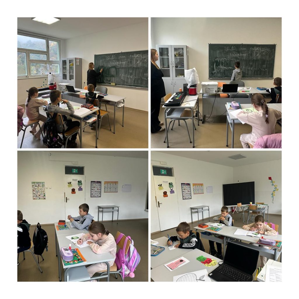 На часу математике реализован је тематски дан – ученици су решавали задатке сабирања и одузимања исписане на „јабукама“.