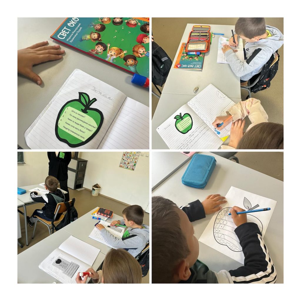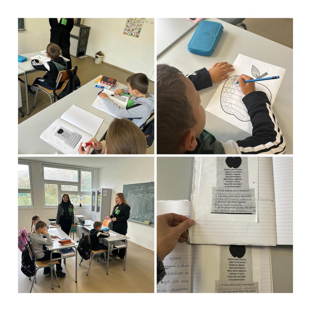 Из српског језика су учили песму „Јабука“, коју су заједно анализирали, обрађујући текст, стихове, риму и књижевне елементе.