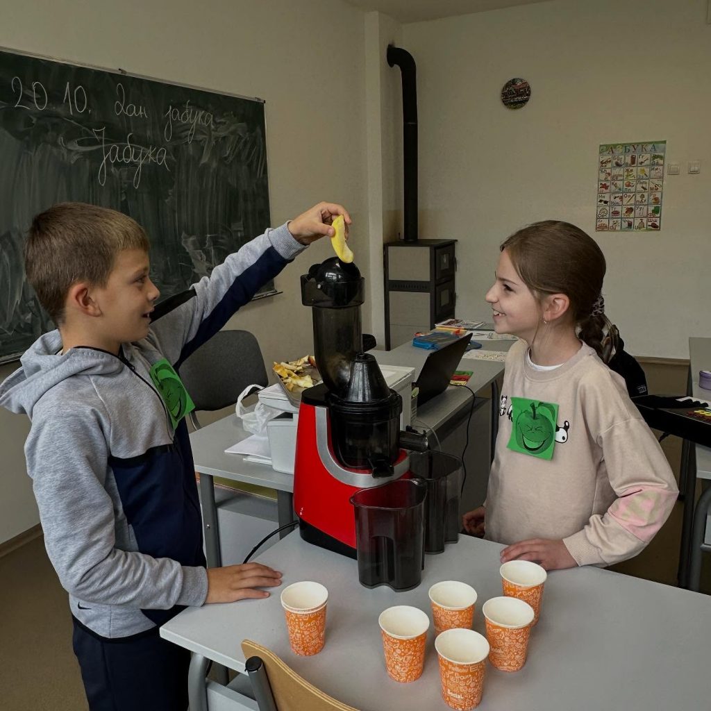 Учитељице су припремиле и разноврсне производе од јабуке – штрудле, бомбоне, чај, сок… Посебно занимљив део био је цеђење сока од јабуке, које су ученици уз помоћ учитељица радосно обављали. Предшколац је све време реализовао посебне и заједничке задатке прилагођене узрасту.