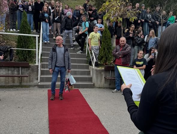 Ученици су такође упутили своје речи захвалности – прочитали су опроштајна писма и на дирљив начин пожелели наставнику све најбоље у наредном животном поглављу. ![]()