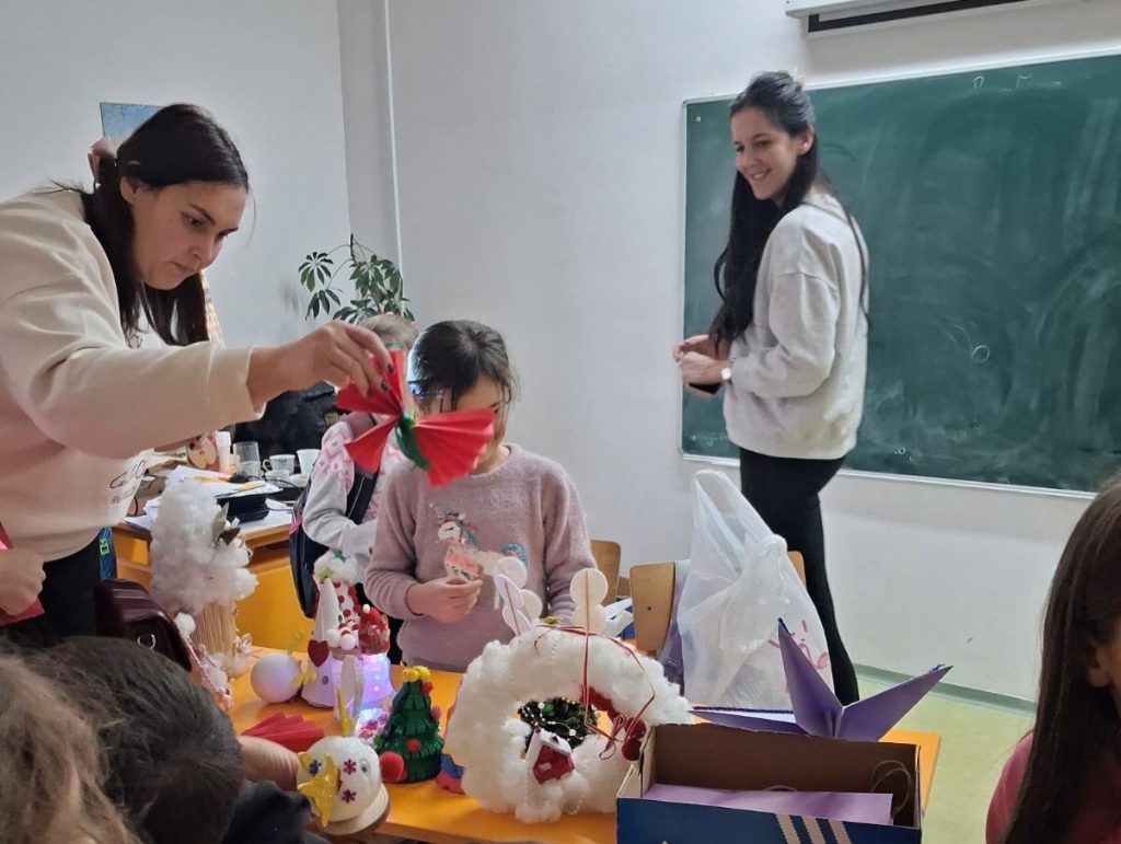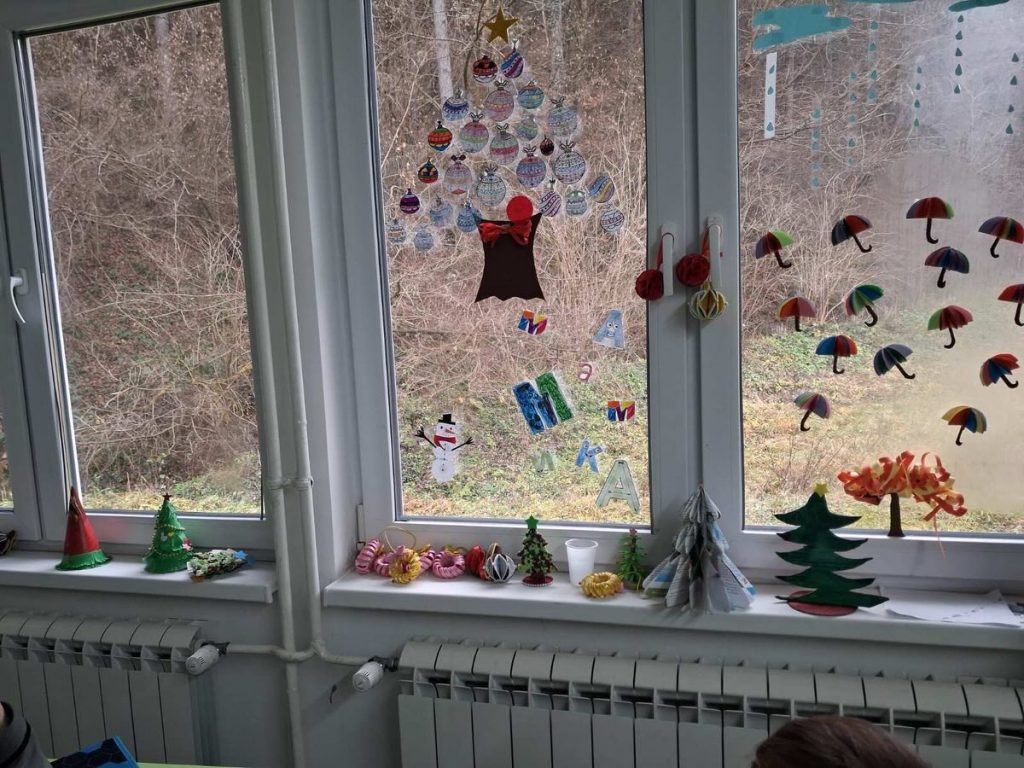 Почетак зиме дочекали смо у празничном духу – уређени су прозори и врата, а учионица је засијала у зимским бојама и украсима. У веселој и радној атмосфери, ученице и учитељица издвојеног одељења у Хртима посебно су припремиле новогодишње украсе и новогодишње пакетиће, који ће бити део продајне изложбе на новогодишњем базару.